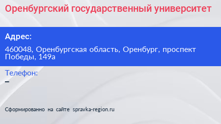 Оренбургский государственный университет по адресу 460048, Оренбургская область, Оренбург, проспект Победы, 149а в дальнейшем Организация, размещена в следующих категориях: