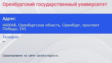 Оренбургский государственный университет по адресу 460048, Оренбургская область, Оренбург, проспект Победы, 141 в дальнейшем Организация, размещена в следующих категориях: