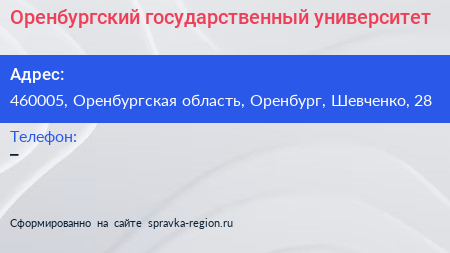 Оренбургский государственный университет по адресу 460005, Оренбургская область, Оренбург, Шевченко, 28 в дальнейшем Организация, размещена в следующих категориях: