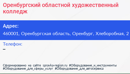 Оренбургский областной художественный колледж по адресу 460001, Оренбургская область, Оренбург, Хлеборобная, 2 в дальнейшем Организация, размещена в следующих категориях: