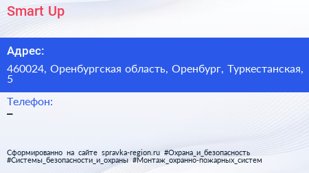 Smart Up по адресу 460024, Оренбургская область, Оренбург, Туркестанская, 5 в дальнейшем Организация, размещена в следующих категориях: