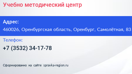 Учебно-методический центр по адресу 460026, Оренбургская область, Оренбург, Самолётная, 83 в дальнейшем Организация, размещена в следующих категориях: