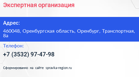 Экспертная организация по адресу 460048, Оренбургская область, Оренбург, Транспортная, 8а в дальнейшем Организация, размещена в следующих категориях: