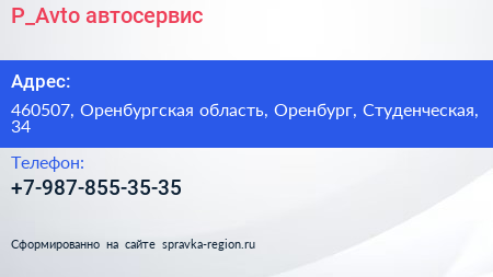 P_Avto, автосервис по адресу 460507, Оренбургская область, Оренбург, Студенческая, 34 в дальнейшем Организация, размещена в следующих категориях: