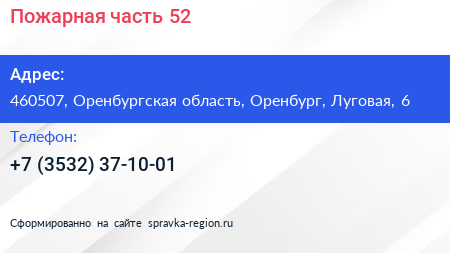 Пожарная часть №52 по адресу 460507, Оренбургская область, Оренбург, Луговая, 6 в дальнейшем Организация, размещена в следующих категориях: