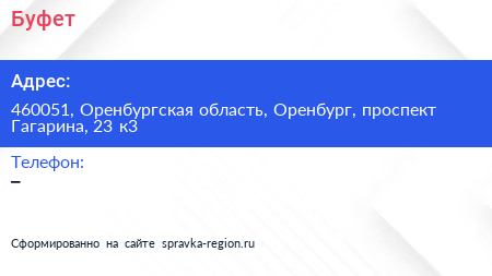 Буфет по адресу 460051, Оренбургская область, Оренбург, проспект Гагарина, 23 к3 в дальнейшем Организация, размещена в следующих категориях: