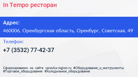 In Tempo, ресторан по адресу 460006, Оренбургская область, Оренбург, Советская, 49 в дальнейшем Организация, размещена в следующих категориях: