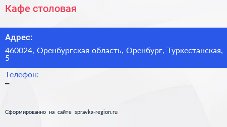 Кафе-столовая по адресу 460024, Оренбургская область, Оренбург, Туркестанская, 5 в дальнейшем Организация, размещена в следующих категориях: