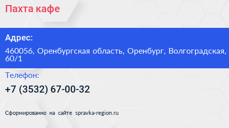Пахта, кафе по адресу 460056, Оренбургская область, Оренбург, Волгоградская, 60/1 в дальнейшем Организация, размещена в следующих категориях: