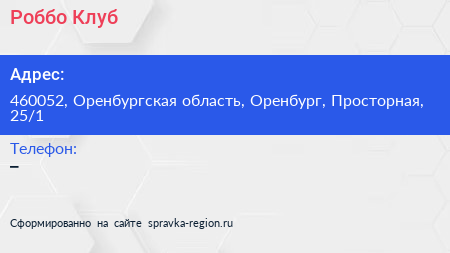 Роббо Клуб по адресу 460052, Оренбургская область, Оренбург, Просторная, 25/1 в дальнейшем Организация, размещена в следующих категориях: