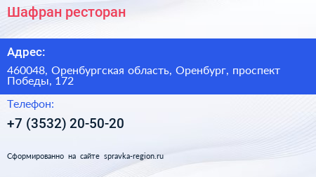Шафран, ресторан по адресу 460048, Оренбургская область, Оренбург, проспект Победы, 172 в дальнейшем Организация, размещена в следующих категориях: