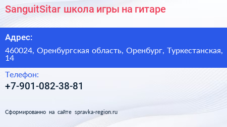 SanguitSitar, школа игры на гитаре по адресу 460024, Оренбургская область, Оренбург, Туркестанская, 14 в дальнейшем Организация, размещена в следующих категориях:
