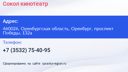 Сокол, кинотеатр по адресу 460026, Оренбургская область, Оренбург, проспект Победы, 132а в дальнейшем Организация, размещена в следующих категориях: