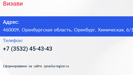 Визави по адресу 460009, Оренбургская область, Оренбург, Химическая, 6/1 в дальнейшем Организация, размещена в следующих категориях: