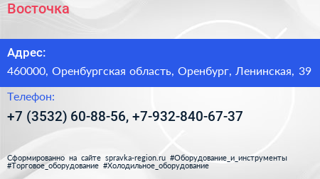 Восточка по адресу 460000, Оренбургская область, Оренбург, Ленинская, 39 в дальнейшем Организация, размещена в следующих категориях:
