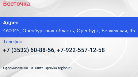 Восточка по адресу 460045, Оренбургская область, Оренбург, Беляевская, 45 в дальнейшем Организация, размещена в следующих категориях: