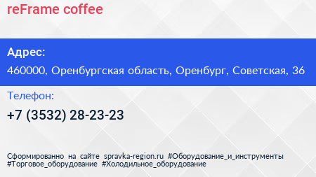 reFrame coffee по адресу 460000, Оренбургская область, Оренбург, Советская, 36 в дальнейшем Организация, размещена в следующих категориях: