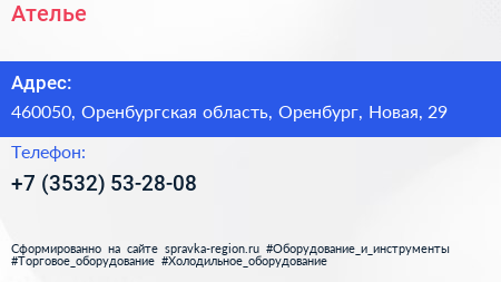 Ателье по адресу 460050, Оренбургская область, Оренбург, Новая, 29 в дальнейшем Организация, размещена в следующих категориях: