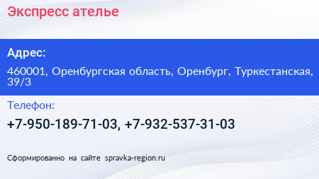 Экспресс, ателье по адресу 460001, Оренбургская область, Оренбург, Туркестанская, 39/3 в дальнейшем Организация, размещена в следующих категориях: