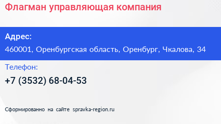 Флагман, управляющая компания по адресу 460001, Оренбургская область, Оренбург, Чкалова, 34 в дальнейшем Организация, размещена в следующих категориях: