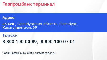 Газпромбанк, терминал по адресу 460040, Оренбургская область, Оренбург, Карагандинская, 59 в дальнейшем Организация, размещена в следующих категориях: