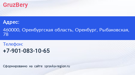 GruzBery по адресу 460000, Оренбургская область, Оренбург, Рыбаковская, 78 в дальнейшем Организация, размещена в следующих категориях: