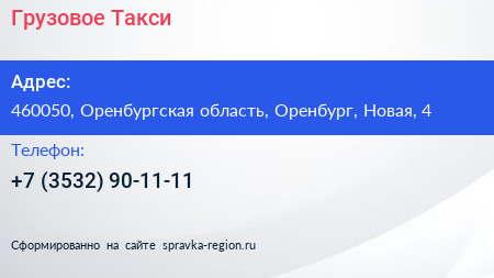 Грузовое Такси по адресу 460050, Оренбургская область, Оренбург, Новая, 4 в дальнейшем Организация, размещена в следующих категориях: