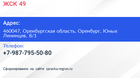 ЖСК №49 по адресу 460047, Оренбургская область, Оренбург, Юных Ленинцев, 8/1 в дальнейшем Организация, размещена в следующих категориях: