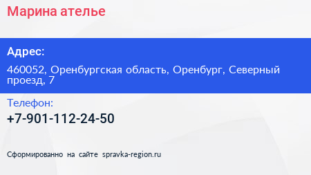 Марина, ателье по адресу 460052, Оренбургская область, Оренбург, Северный проезд, 7 в дальнейшем Организация, размещена в следующих категориях: