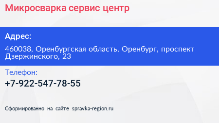Микросварка-сервис, центр по адресу 460038, Оренбургская область, Оренбург, проспект Дзержинского, 23 в дальнейшем Организация, размещена в следующих категориях: