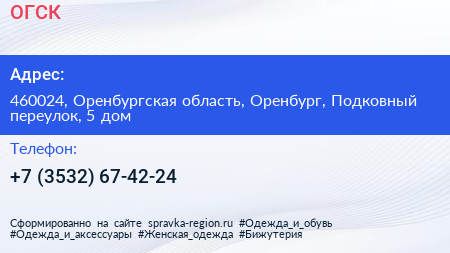 ОГСК по адресу 460024, Оренбургская область, Оренбург, Подковный переулок, 5 дом в дальнейшем Организация, размещена в следующих категориях: