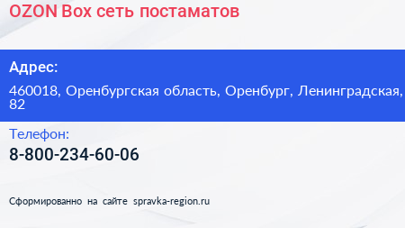 OZON Box, сеть постаматов по адресу 460018, Оренбургская область, Оренбург, Ленинградская, 82 в дальнейшем Организация, размещена в следующих категориях:
