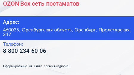 OZON Box, сеть постаматов по адресу 460035, Оренбургская область, Оренбург, Пролетарская, 247 в дальнейшем Организация, размещена в следующих категориях: