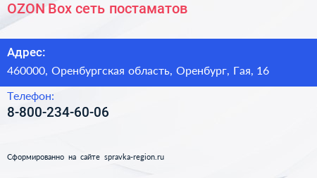 OZON Box, сеть постаматов по адресу 460000, Оренбургская область, Оренбург, Гая, 16 в дальнейшем Организация, размещена в следующих категориях: