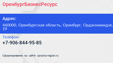 ОренбургБизнесРесурс по адресу 460000, Оренбургская область, Оренбург, Орджоникидзе, 19 в дальнейшем Организация, размещена в следующих категориях: