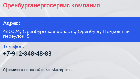 Оренбургэнергосервис, компания по адресу 460024, Оренбургская область, Оренбург, Подковный переулок, 5 в дальнейшем Организация, размещена в следующих категориях: