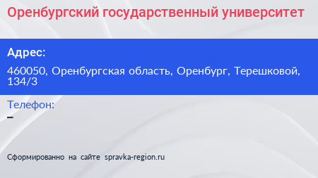 Оренбургский государственный университет по адресу 460050, Оренбургская область, Оренбург, Терешковой, 134/3 в дальнейшем Организация, размещена в следующих категориях:
