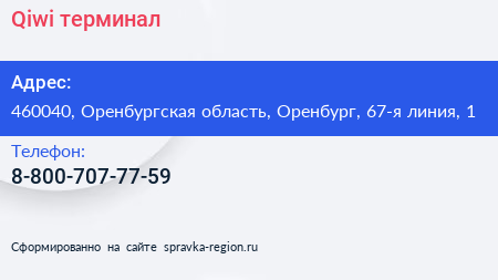 Qiwi, терминал по адресу 460040, Оренбургская область, Оренбург, 67-я линия, 1 в дальнейшем Организация, размещена в следующих категориях: