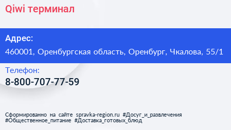 Qiwi, терминал по адресу 460001, Оренбургская область, Оренбург, Чкалова, 55/1 в дальнейшем Организация, размещена в следующих категориях: