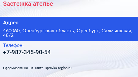 Застежка, ателье по адресу 460060, Оренбургская область, Оренбург, Салмышская, 48/2 в дальнейшем Организация, размещена в следующих категориях: