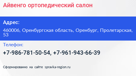 Айвенго, ортопедический салон по адресу 460006, Оренбургская область, Оренбург, Пролетарская, 53 в дальнейшем Организация, размещена в следующих категориях:
