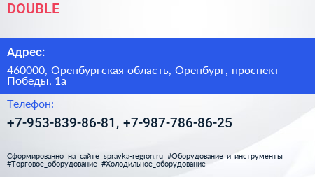 DOUBLE по адресу 460000, Оренбургская область, Оренбург, проспект Победы, 1а в дальнейшем Организация, размещена в следующих категориях: