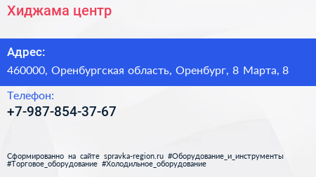 Хиджама, центр по адресу 460000, Оренбургская область, Оренбург, 8 Марта, 8 в дальнейшем Организация, размещена в следующих категориях: