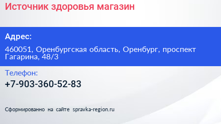 Источник здоровья, магазин по адресу 460051, Оренбургская область, Оренбург, проспект Гагарина, 48/3 в дальнейшем Организация, размещена в следующих категориях: