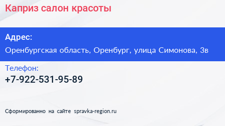 Каприз, салон красоты по адресу Оренбургская область, Оренбург, улица Симонова, 3в в дальнейшем Организация, размещена в следующих категориях: