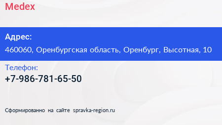 Medex по адресу 460060, Оренбургская область, Оренбург, Высотная, 10 в дальнейшем Организация, размещена в следующих категориях: