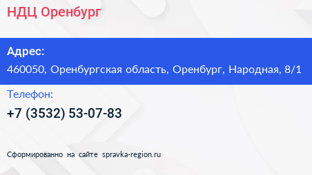 НДЦ-Оренбург по адресу 460050, Оренбургская область, Оренбург, Народная, 8/1 в дальнейшем Организация, размещена в следующих категориях: