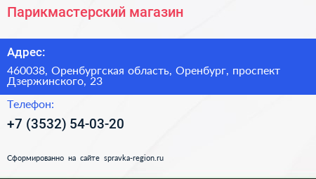 Парикмастерский магазин по адресу 460038, Оренбургская область, Оренбург, проспект Дзержинского, 23 в дальнейшем Организация, размещена в следующих категориях: