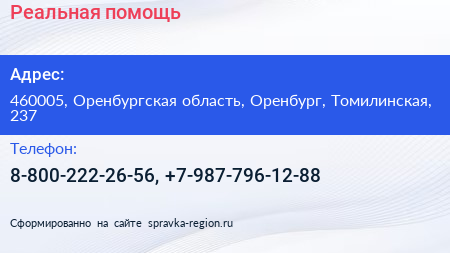 Реальная помощь по адресу 460005, Оренбургская область, Оренбург, Томилинская, 237 в дальнейшем Организация, размещена в следующих категориях: