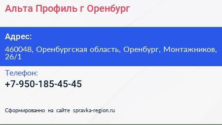 Альта-Профиль, г. Оренбург по адресу 460048, Оренбургская область, Оренбург, Монтажников, 26/1 в дальнейшем Организация, размещена в следующих категориях: